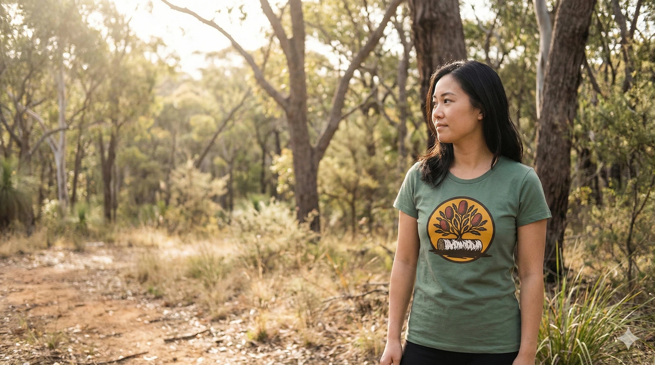 Every design begins with native flora that's sketched, digitised, and transferred to organic cotton that's been certified from seed to shelf. Wear it, wash it, and know exactly where it came from.