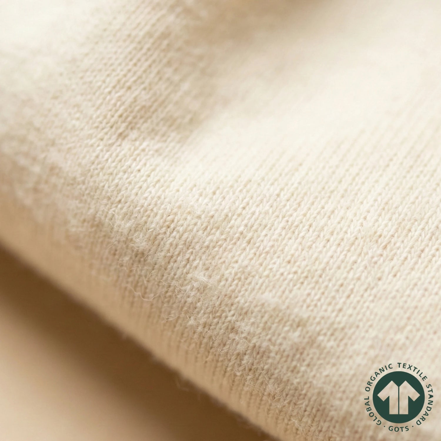 Our garments start with cotton grown without pesticides or synthetic fertilisers. GOTS certification means every step, from farm to finished product, meets strict environmental and social standards. Softer on skin. Easier on the planet.